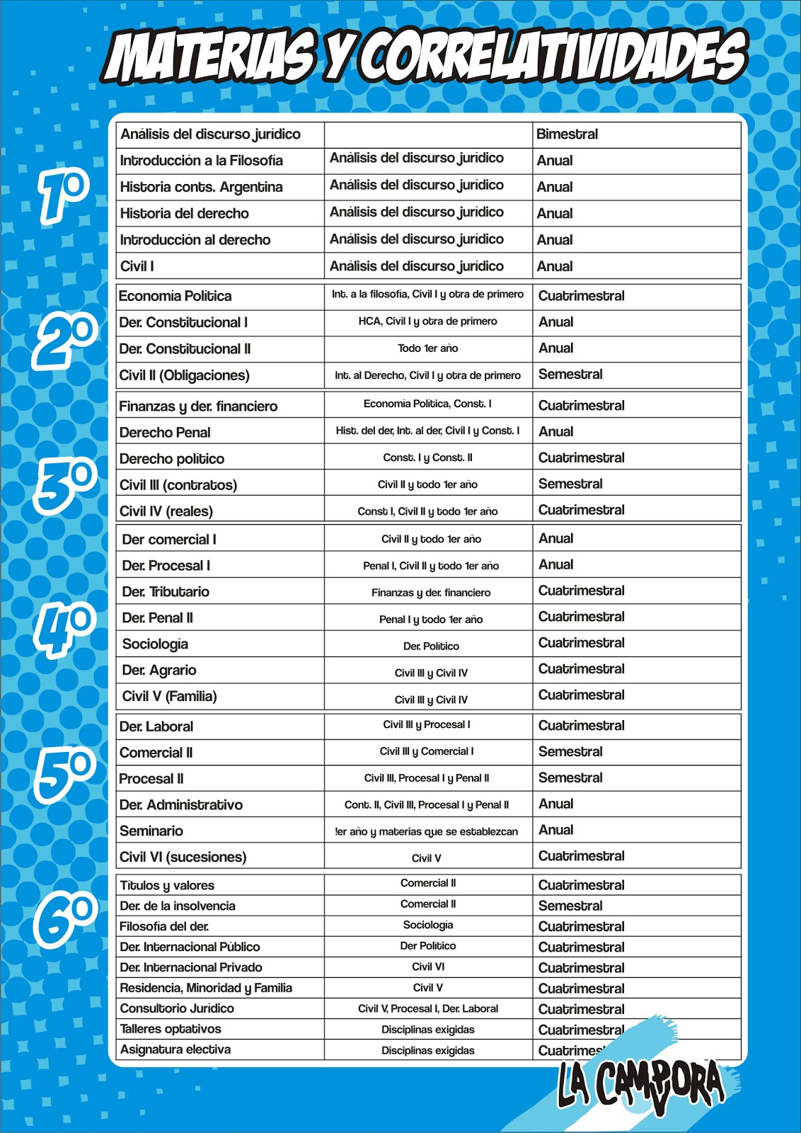 Arquitectura, Derecho, Cs. Veterinarias, Cs. Agrarias pero todos encolumnados